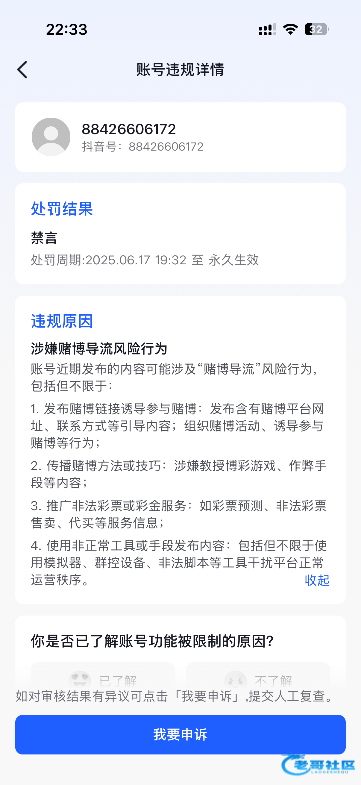 兄弟们现在抖音号看个人机制有机会可以解封只需要在申诉哪里写你自己知道错误了并且反思了日后再写一个保证书上传就可以解封了我这个号封禁一年多了