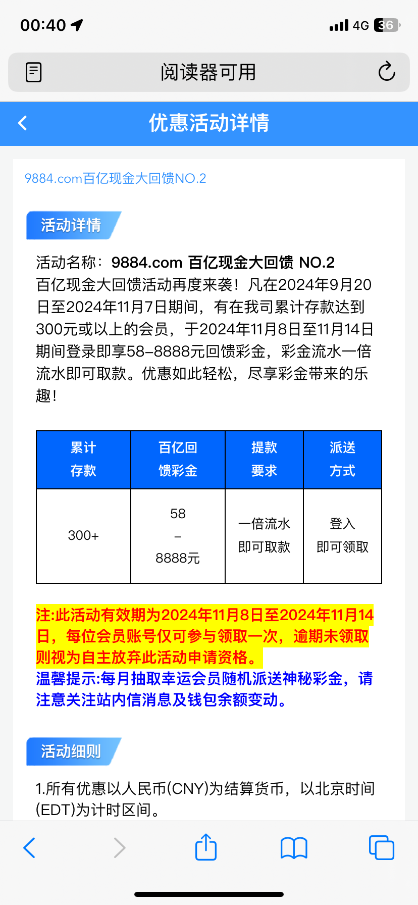 现金回馈现在注册的8号可以领18 充值过300+的领58 9884.com