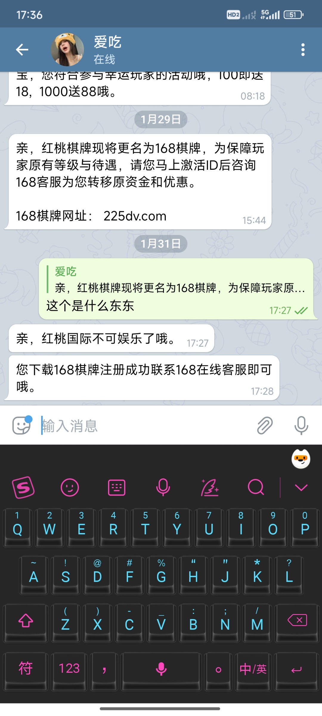 红桃国际不能娱乐了,换成168了,可以转移VIP等级和彩金 地址 225dv.com