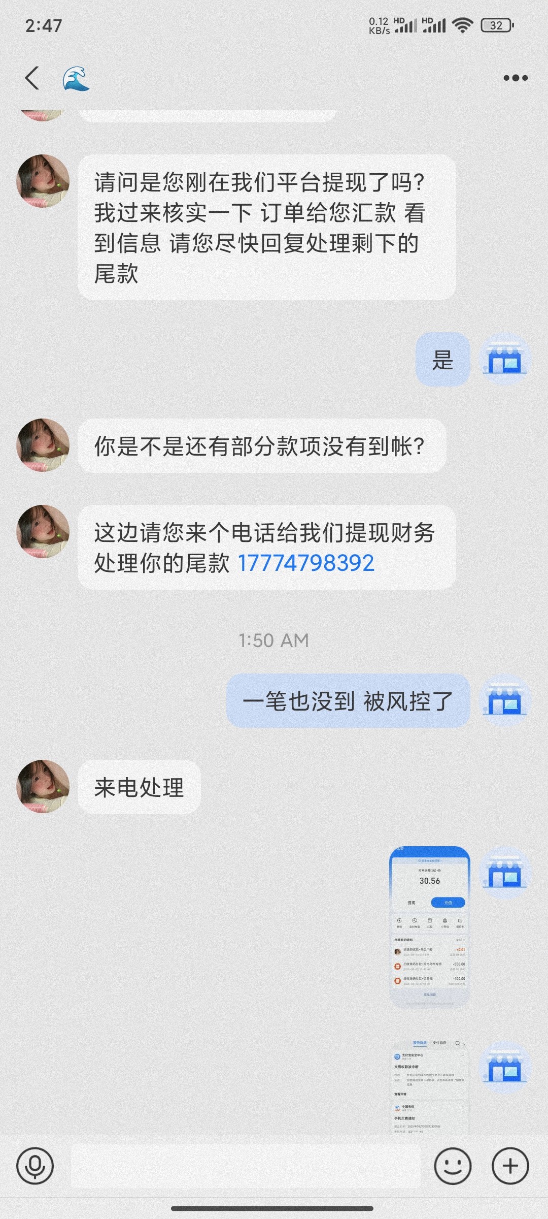 老哥们 又遇到诈骗犯了 我想知道这是不是c7的内部人员搞我 不然他们怎么知道我的支付宝和手机号好不容易200打到2200