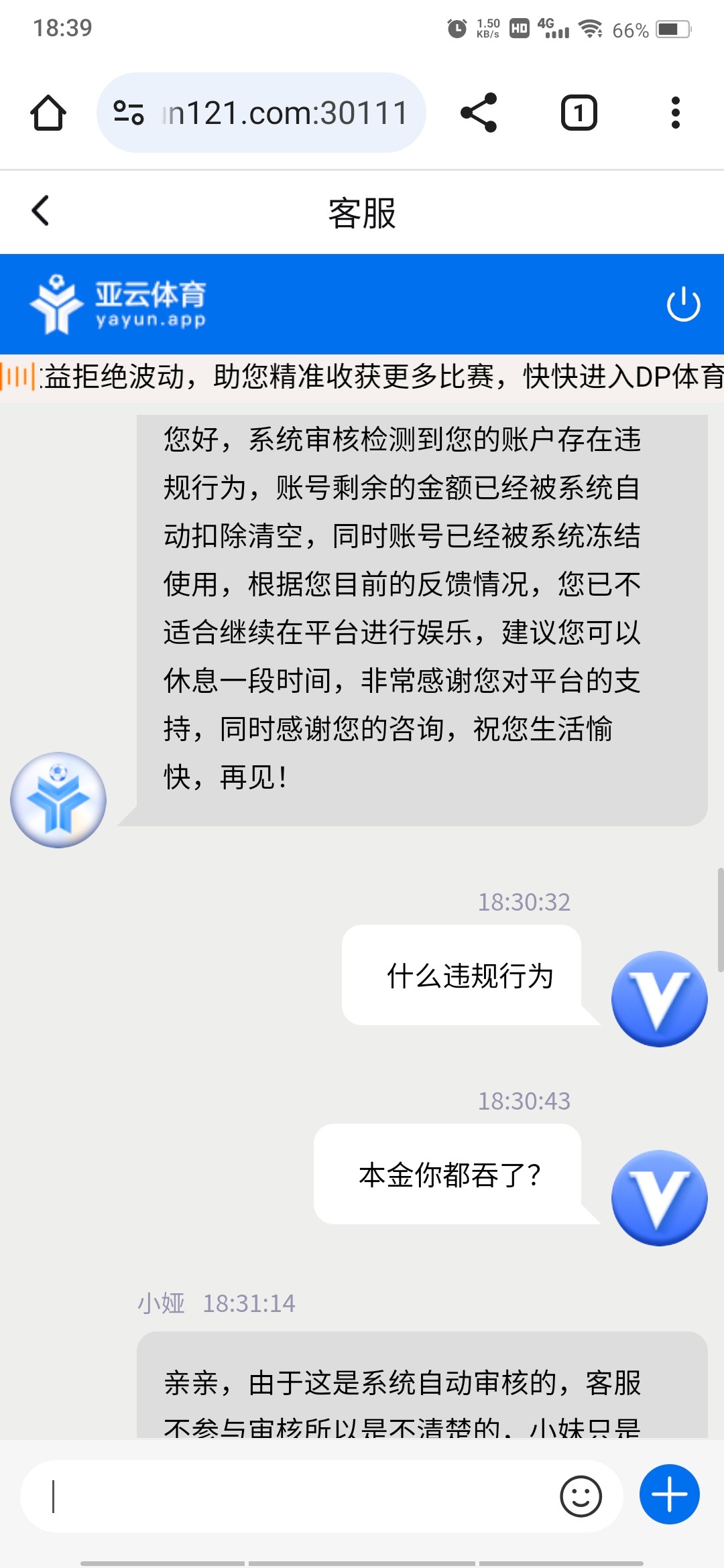 草他妈的亚云体育,黑比台,充了100啥活动都没参加,提款一个小时后直接封号。网址:yayun.app 避雷!!!