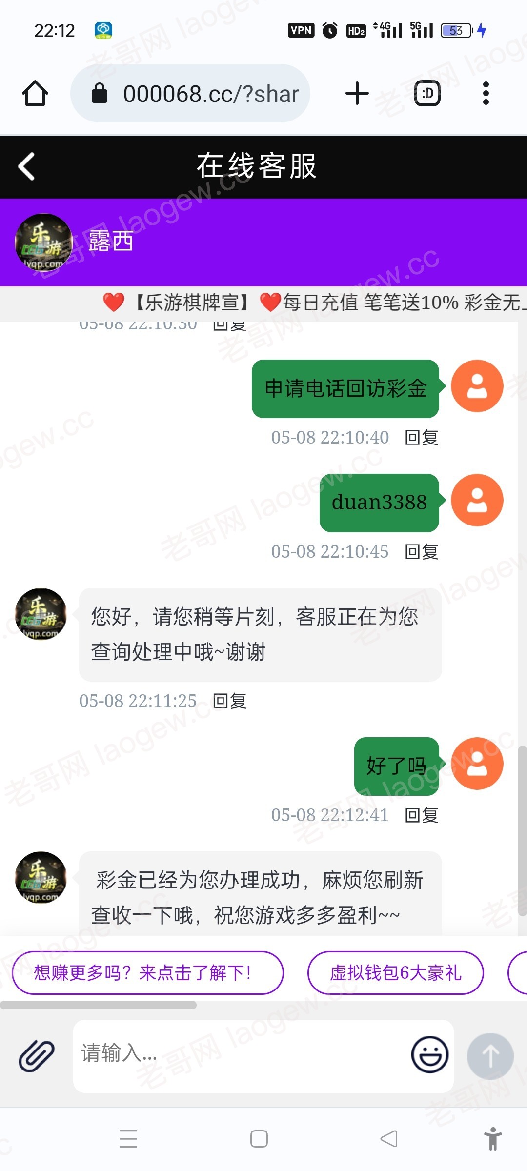 【乐游棋牌】—✅—回访彩金