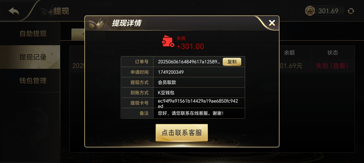 这次存了100,打到500提款300,然后就失败了,退本金