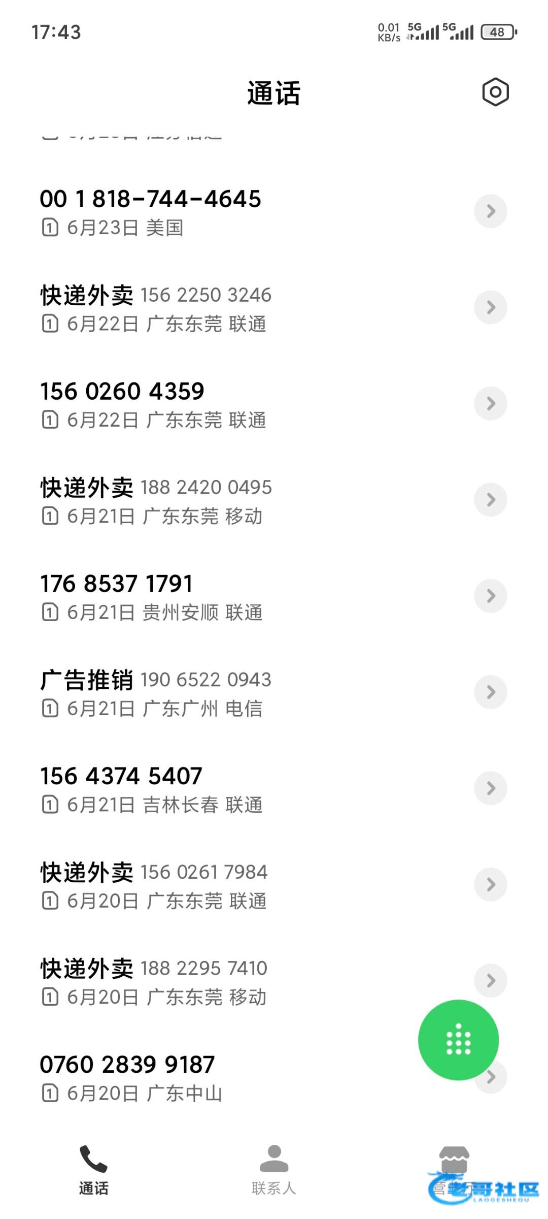 我有小半年没有国内电话打来了,全是国外的!一两个有可能有一个两个国内电话打来还是那个叫澳彩的台子机器人打的!这个台子她妈的真恶心打了几年的电话了还是打!真操蛋!