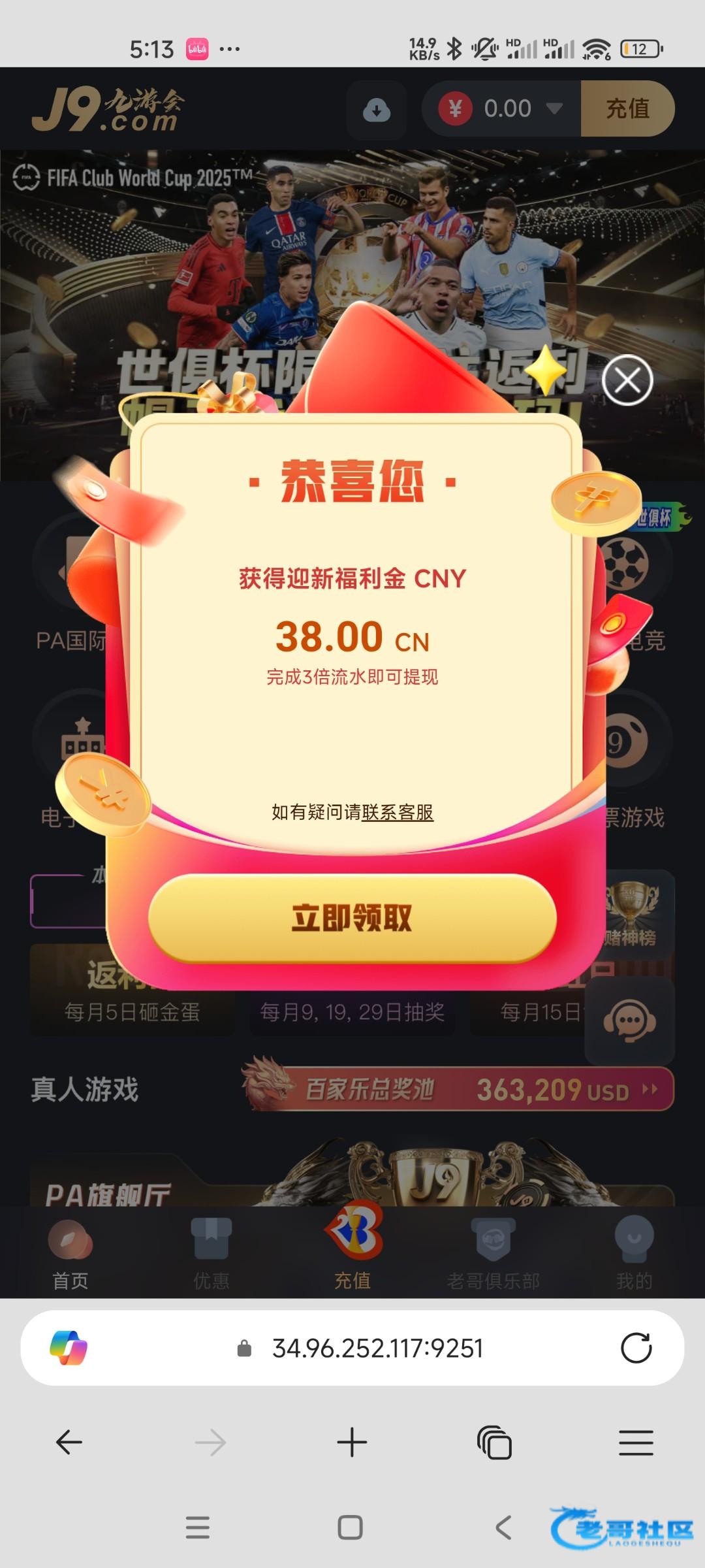 看见论坛帖子说有登录彩金,看模板没注册过,注册了账号,然后立马就接到电话送 38 彩金,三倍流水提,自测!(严禁充值)j9.com