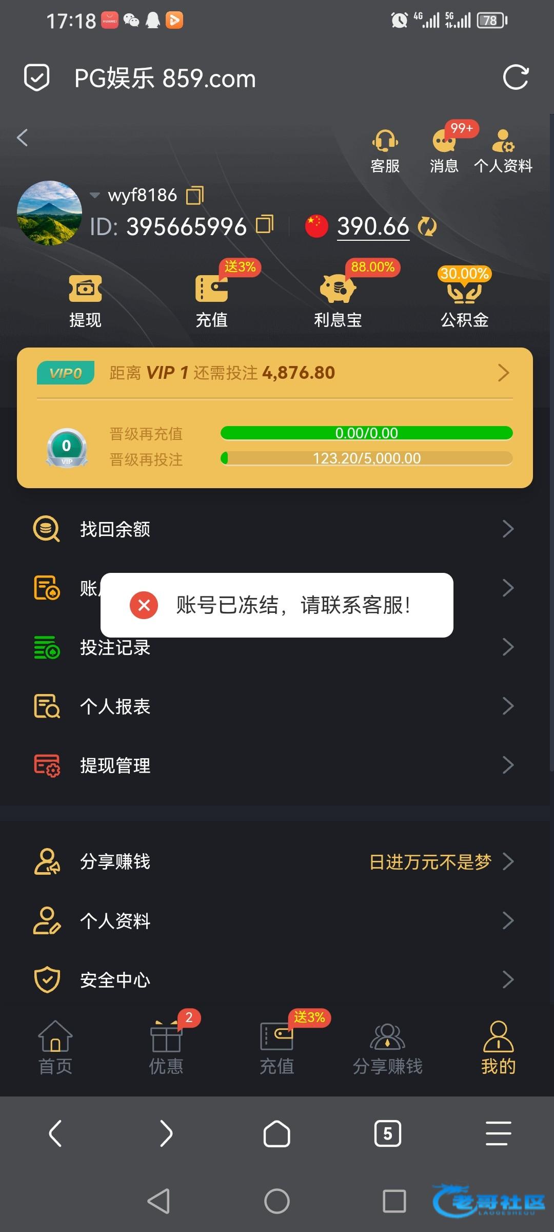 提现冻结账号