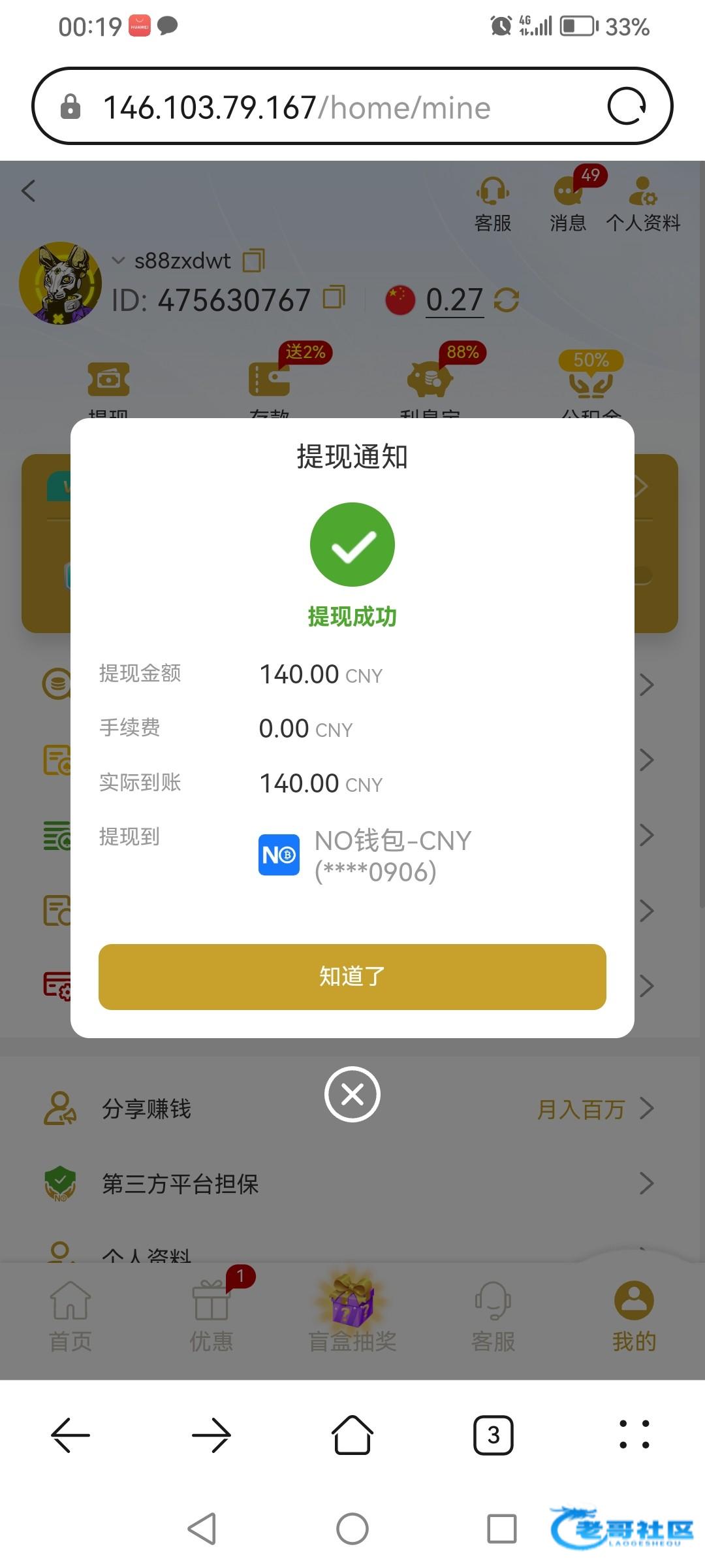 注册未充值领取过一个8,今天看到别人发的登陆有8和18不等的彩金,自己登上去送了28,提现140秒到,有号的登上去看下,没有无视就可以 378.com